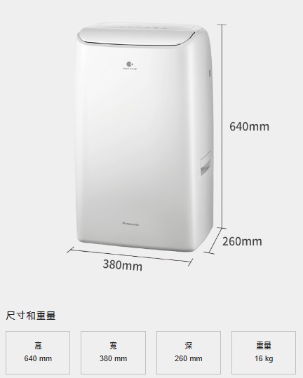 型號 F-YV32NN系列變頻高效型 除濕能力(L/日) 16除濕適用坪數 20能源效率(第1級)ECONAVI節能消耗電功率(W)219EF-能源因數值(L/kWh) 3.05年耗電量(度)118除濕設定除濕定時功能 XHEPA濾網清淨初效濾網關機防霉面板前方面板顯示全平面觸控按鍵40%%1 ~ 12 HF-ZYL24W(另購)奈米銀抗菌清淨濾網LED全平面觸控面板側拉水箱烘鞋烘衣配件水箱便利出風設計廣角出風 智慧健康家電活動式手把底部滑輪萬向輪安全裝置電源線收納39項DC 馬達電源收納盒適用室溫範圍電源1C 40C110V/60Hz基本規格尺寸(高xx深mm) 640x380x260水箱容量(L)4.0機體重量(kg)16.0*1 根據台灣GfK市場銷售量調查報告(2008.4-2024.3)。*2 至2025.6.15止,依Panasonic變頻除濕機系列(12L、14L、18L、19L、20L、22L、25L),與他社於台灣能源署網站登錄資料之同等級變頻機種比較。*3 依Panasonic除濕機F-YV24NN與政府2026年一級節能標準EF值2.74比較(2.83/2.74x1003%) *4 以日本Panasonic 2016年9月推出之搭載nanoe X 的加濕型空氣清淨機,依據ESR測定法得(OH氫氧離子)。*5【試驗單位】法國Texcell機構【試驗條件】將nanoe™ X 發生器安裝於距離地面15公的45L密閉空間下經過2小時,使用nanoe™ X發生器可抑制新型冠狀病毒SARS-CoV-2(附著型)達99.99%。詳細資訊請參閱官網https://www.panasonic.com/tw/consumer/learn-more/nanoe/nanoe.html#2。