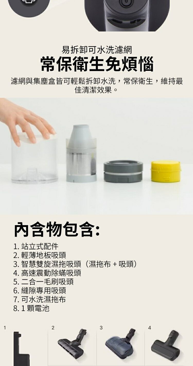 ◎ 特色(吸塵器) - 可水洗三效濾網:是