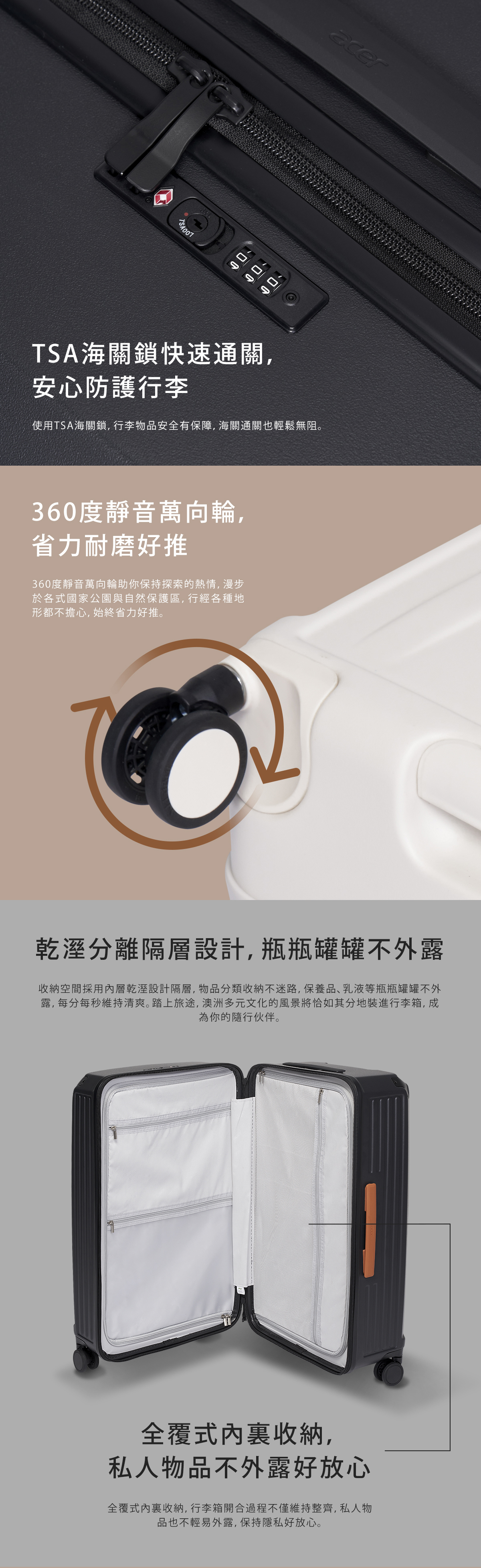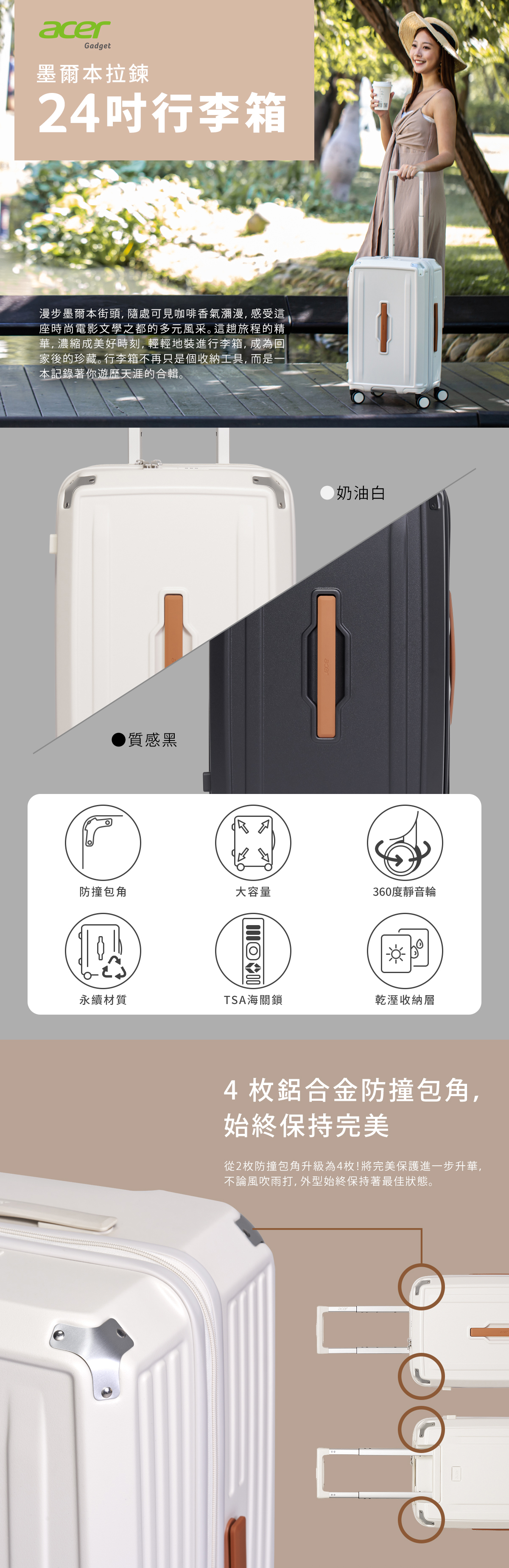 [ACER] Melbourne Plus carry on size 墨爾本拉鍊行李箱 (24吋)(兩色可選)